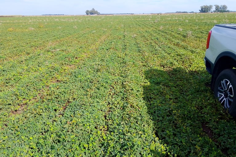 Se muestra a continuación, una foto de un lote de maní con viruela y a fin de ciclo.